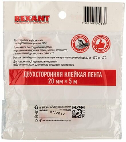 Сервис сравнения цен СкидкаГИД предлагает сравнить цены на товар «Двухсторонняя клейкая лента REXANT 09-6020»