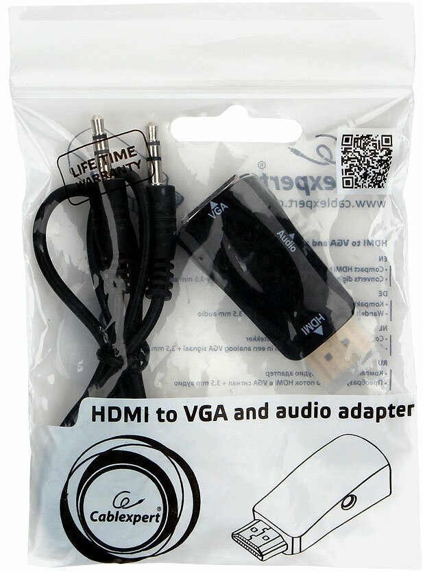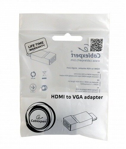 | Прочие особенности | Компактный видео-аудио адаптер, Преобразует видео поток HDMI в VGA сигнал + 3.5 mm аудио, Разрешение изображения до 1920 x 1200 точек при 60 Гц, совместимо с версией HDMI v.1.4 |