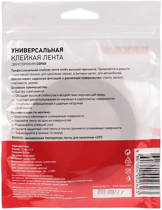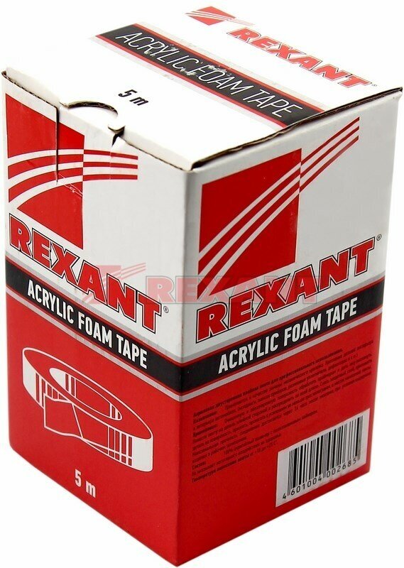 Двусторонние клейкие ленты ACRYLIC Rexant - революционный продукт на основе материалов от компании 3M. Отличающийся очень высокой клейкостью, обладает жесткой акриловой основой и высокой термостойкостью и выдерживает температуру до 130 С. Имеет широкое применение, подходит для склеивания материалов с высокой поверхностной энергией (стекло, металл, акриловые полимеры) включая загрунтованное дерево, так же широко используется в сфере электроники и автомобильной промышленности. Двусторонние клейкие ленты обладают уникальным свойством, полностью восстанавливаться после многократных деформаций. Выдерживают нагрузки окружающей среды, такие как ветер, УФ излучение, вибрации. Оптимальная температура для работы с лентой 20-30 градусов и с относительной влажностью 50%. В условиях, когда к клейкой ленте прилагаются значительные (близкие к предельным) нагрузки следует иметь ввиду, что величина адгезии достигает максимума примерно через сутки после приклеивания.