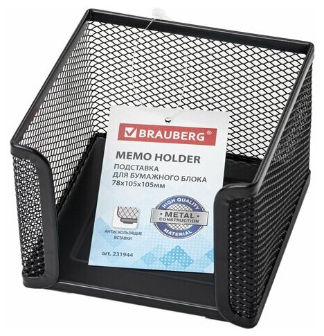 Подставка для бумажного блока BRAUBERG "Germanium" металлическая 78*105*105 мм черная 231944