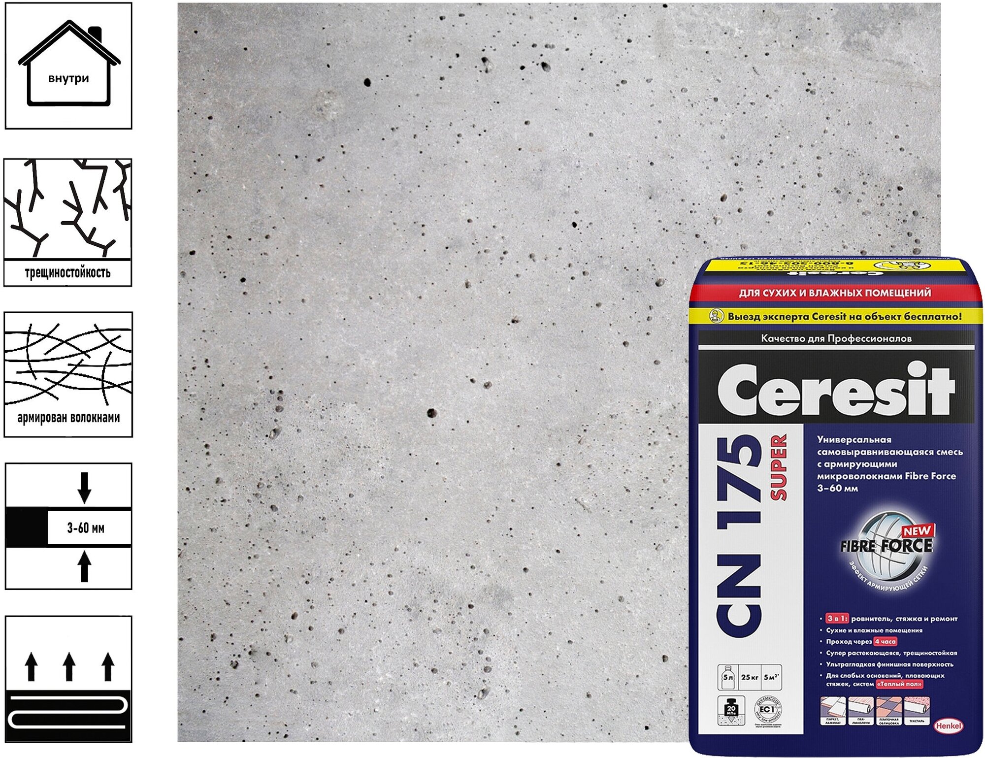 Выберите универсальную самовыравнивающаяся смесь Ceresit CN 175, по доступной цене в каталоге нашего интернет-магазина.
