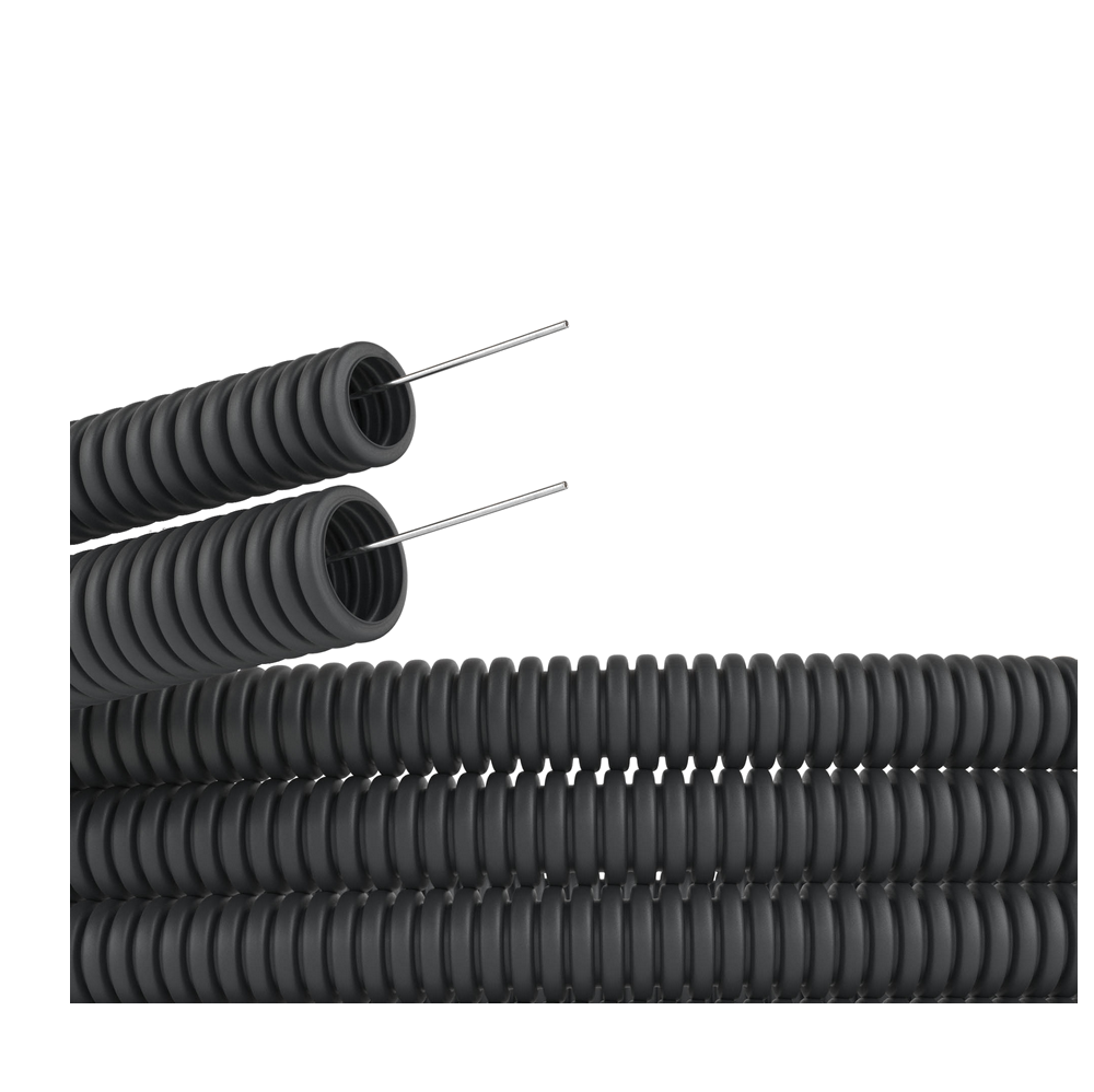 Преимущества: - Устойчивы к воздействию влаги и ультрафиолета, позволяют проводить электромонтажные работы в широком диапазоне температур от -40 до +90 °С без потерь механических и изоляционных свойств; - Наличие зонда обеспечивает удобство протяжки кабеля и провода; - Обладают высокой гибкостью, пластичностью, повышенной износостойкостью и устойчивы к вибрационным и ударным нагрузкам; - Имеют высокие прочностные характеристики, которые позволяют использовать их при прокладке, как в бетоне, так и в грунте; - Воздушный слой между гофрированной и полимерной трубой позволяет снизить теплоотдачу; - Полиэтилен низкого давления не содержит в своём составе и не выделяет в окружающую среду вредных для здоровья химических веществ из группы галогенов; - Предотвращают попадание конденсата в окружающую среду, компенсируют температурные деформации полиэтиленовых и металлопластиковых труб при укладке в бетон. Предназначена для прокладки электрических, телефонных и телевизионных проводов в стяжках в бетонных стенах, гипсокартонных конструкциях, в фальшполах, потолках. Материал: ПНД; Диаметр: 32 мм; Длина: 50 м; Прочность: > 350 Н; Ударная нагрузка: 350 Н; Диэлектрическая прочность: 2000 В; Сопротивление изоляции: 100 Мом; Класс защиты: IP55; Цвет: черный.