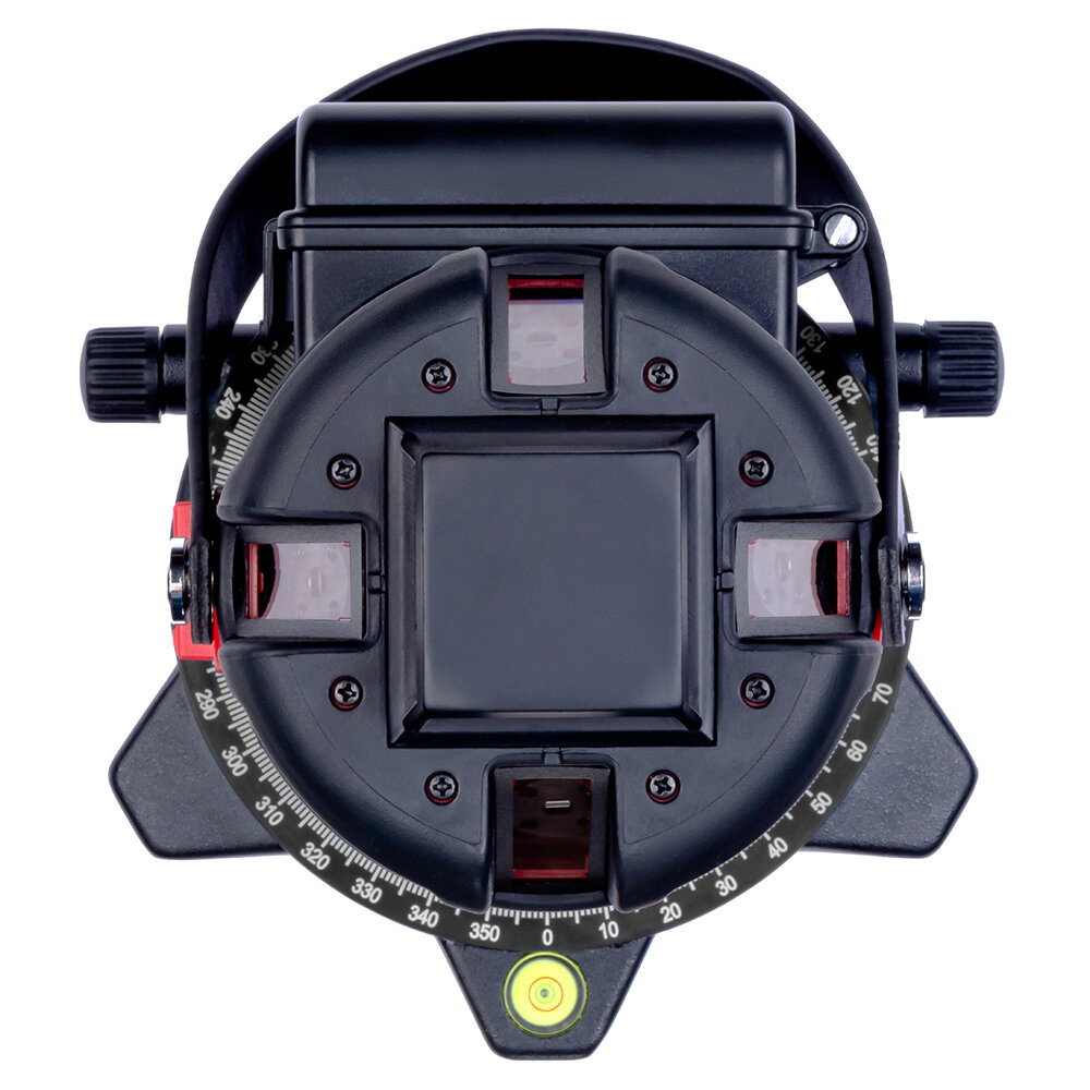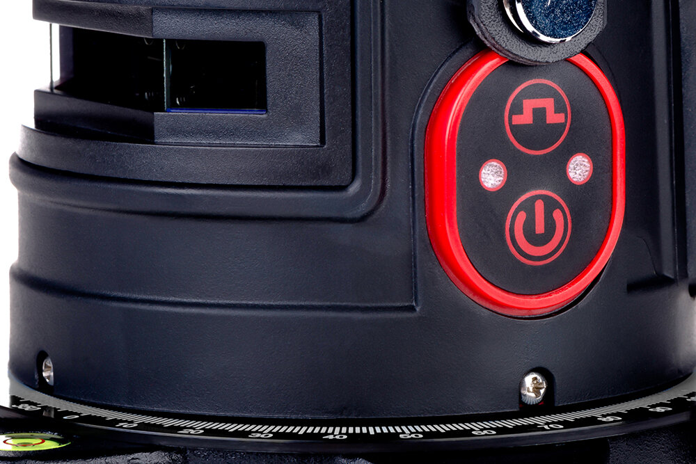 В нижней части корпуса расположено свободно вращающееся градуированное кольцо. Для вращения корпуса и подгонки лазерных линий можно использовать специальный винт. Благодаря этому вы сможете быстро выставить метки на нужных объектах: на полу, стенах или потолке. Кроме того, форм-фактор трипода позволяет в удобной форме расположить лазерный нивелир на объекте.
