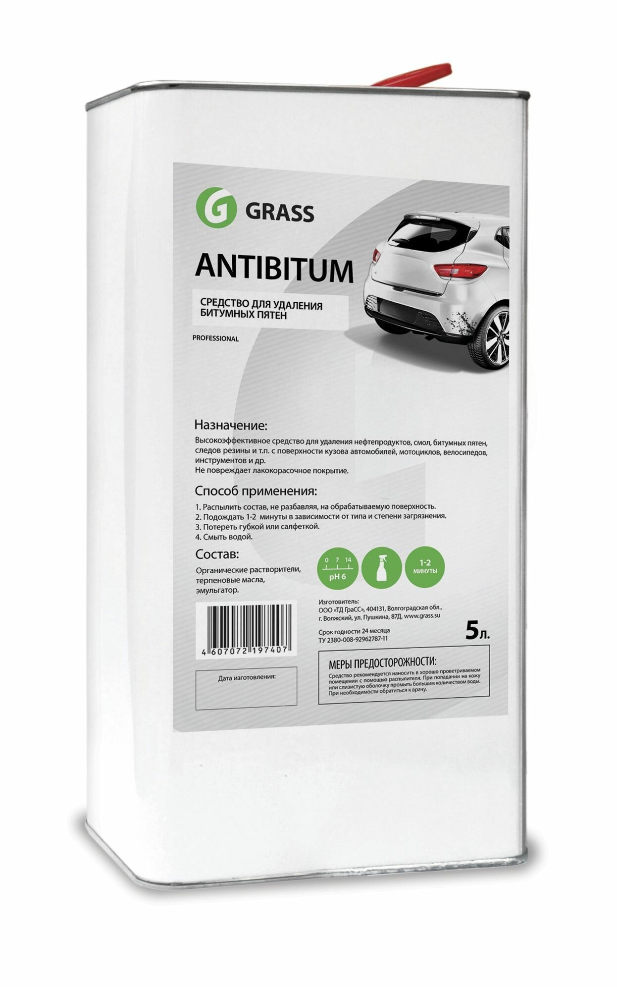 СРЕДСТВО ДЛЯ УДАЛЕНИЯ БИТУМНЫХ ПЯТЕН "ANTIBITUM" 025 Л (1/30) "GRASS"