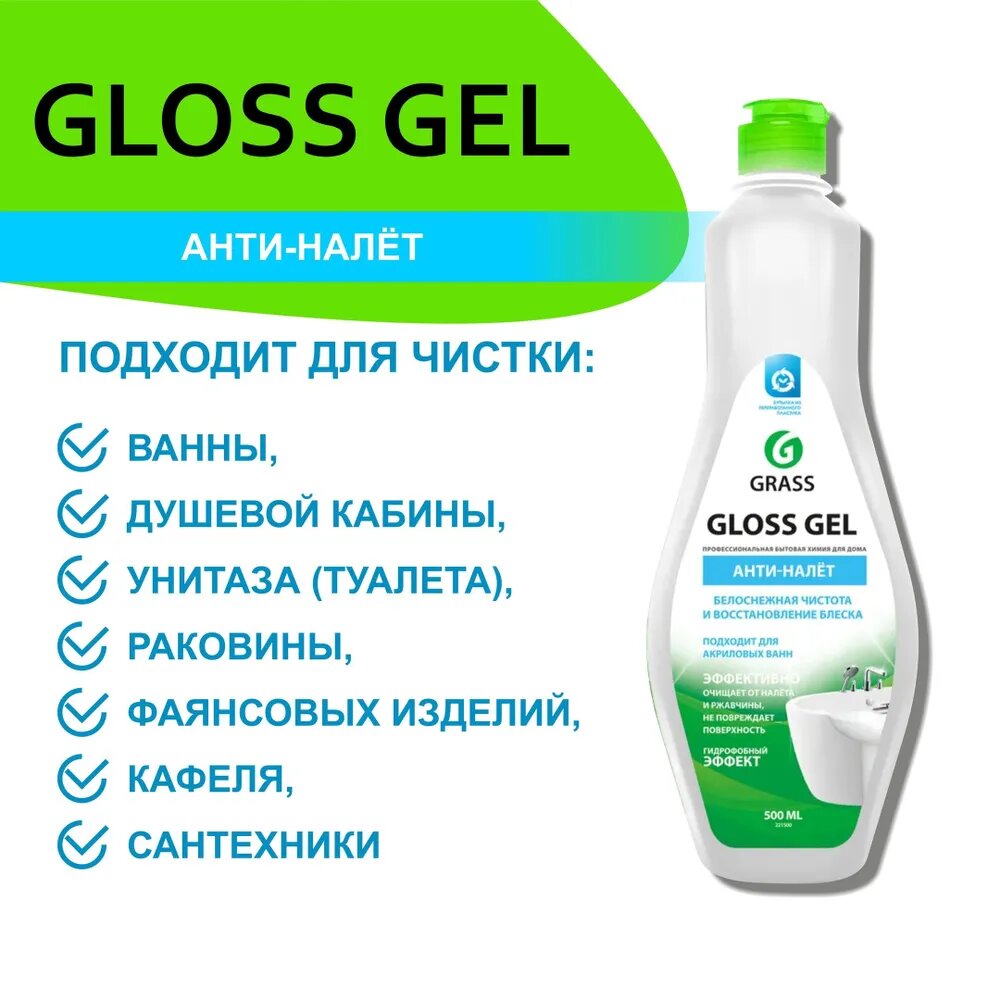 СРЕДСТВО ДЛЯ ВАННОЙ КОМНАТЫ ЧИСТЯЩЕЕ "GLOSS GEL" 05 Л (КИСЛОТНОЕ) (1/12) "GRASS"