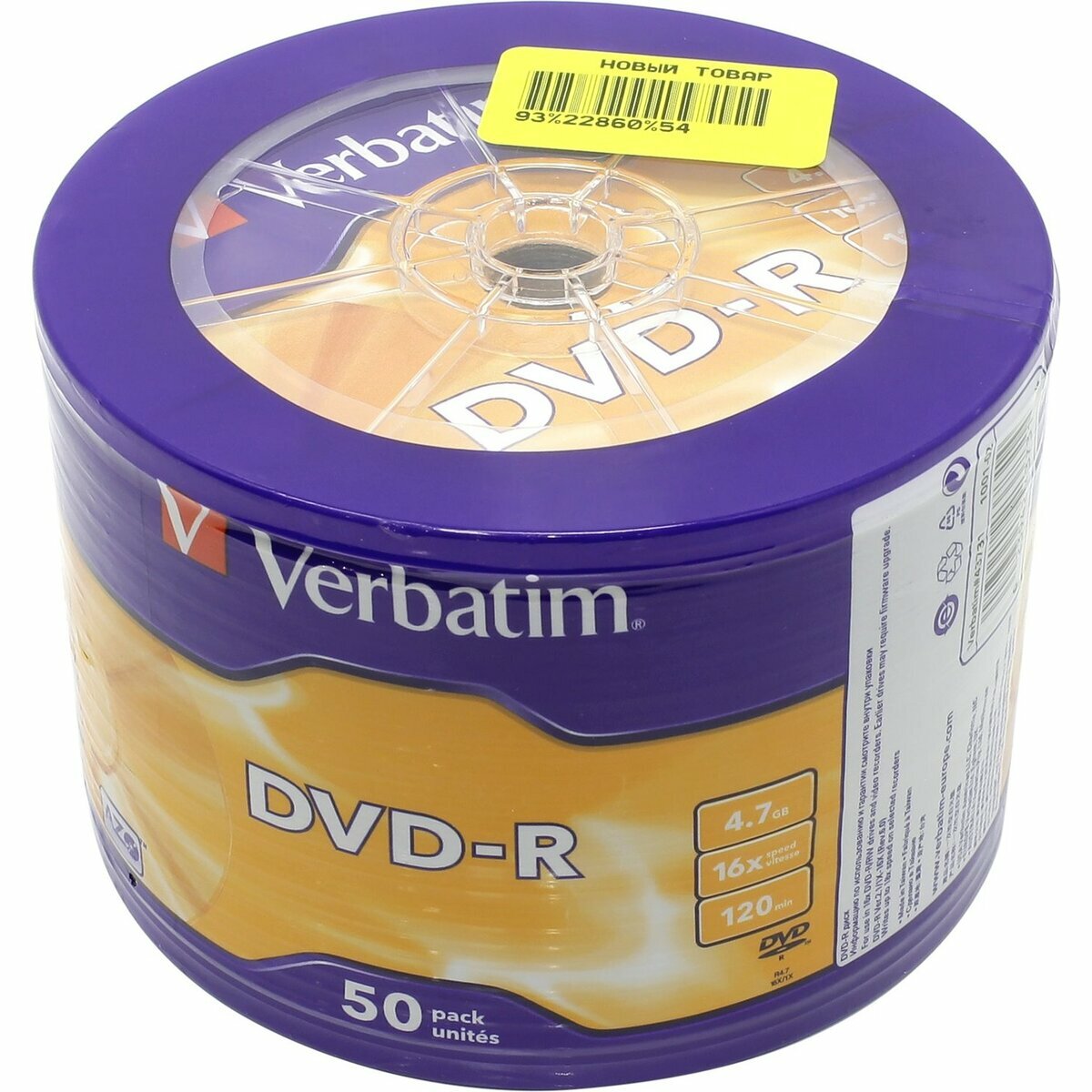 Диски DVD-R Verbatim 16x 4.7Gb Shrink 50шт 43731