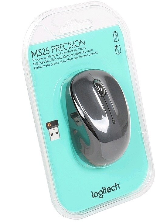 Мышь беспроводная Logitech M325 чёрный серый USB + радиоканал
