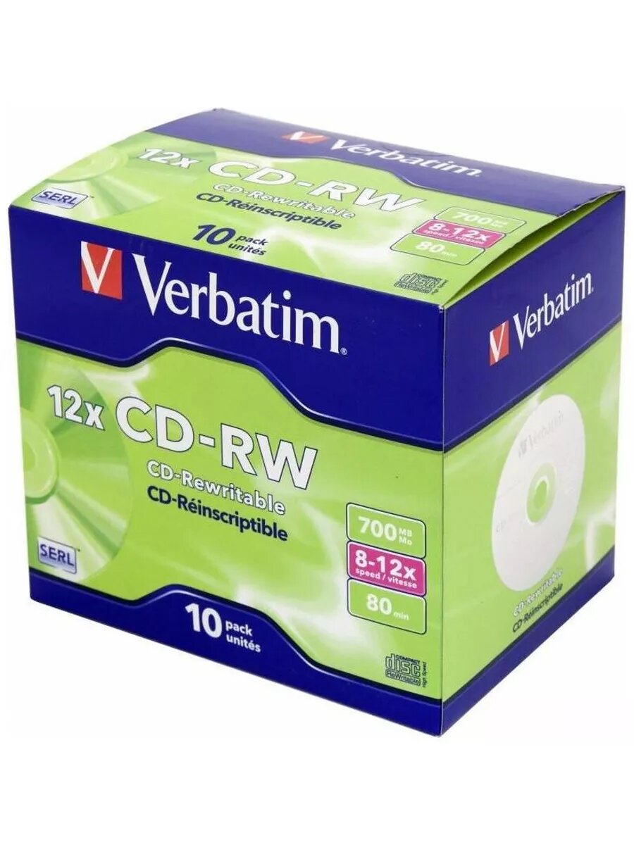 Диски CD-RW Verbatim 700Mb 12x SlimCase 5шт Color 43167 CD-RW 700Mb 12x Slim case Color, 5 шт.