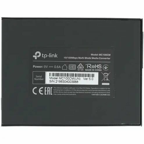 Медиаконвертор TP-LINK MC100CM 10/100M RJ45 to 100M multi-mode SC fiber Converter MC100CM (черный)