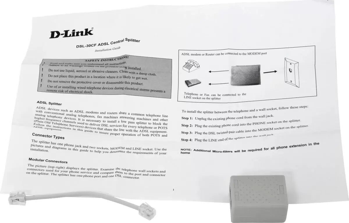 - СПЛИТТЕР D LINK DSL 30CF ADSL