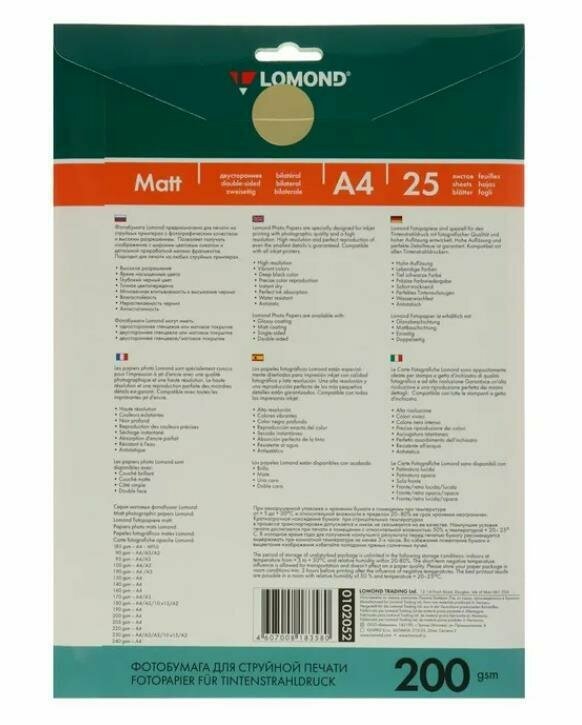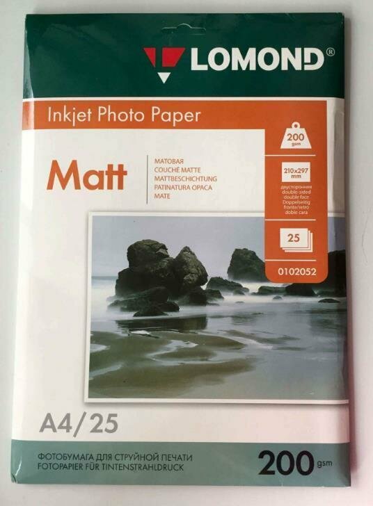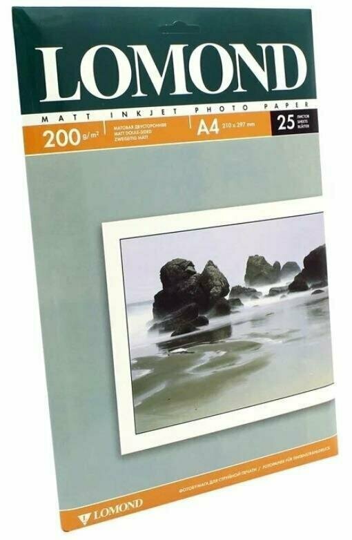 Фотобумага Lomond A4 200 г/кв.м матовая двухсторонняя 50л 0102033 для струйной печати, A4, 200 г/м2, 50 листов, двусторонняя, матовая/матовая (0102033)