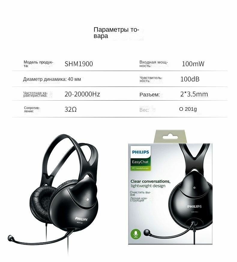Philips SHM1900 - это легкая полноразмерная гарнитура для общения и компьютерных систем развлечений. Эта модель позволяет с помощью регулируемого штатива настроить микрофон наиболее правильным образом для четкой передачи голоса. При этом благодаря уникальной конструкции наушников Вы сможете добиться более удобной посадки для продолжительного ношения. А на проводе для дополнительного комфорта находится регулятор громкости. Также наушники можно использовать для прослушивания музыки, так как они обладает отличными акустическими характеристиками.