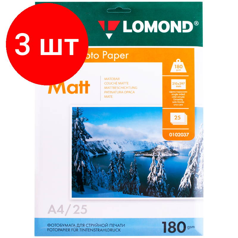 Бумага Lomond A4 180г/кв.м матовая односторонняя 0102037 25л A4, матовая, 180 г/м², 25 листов
