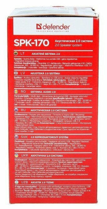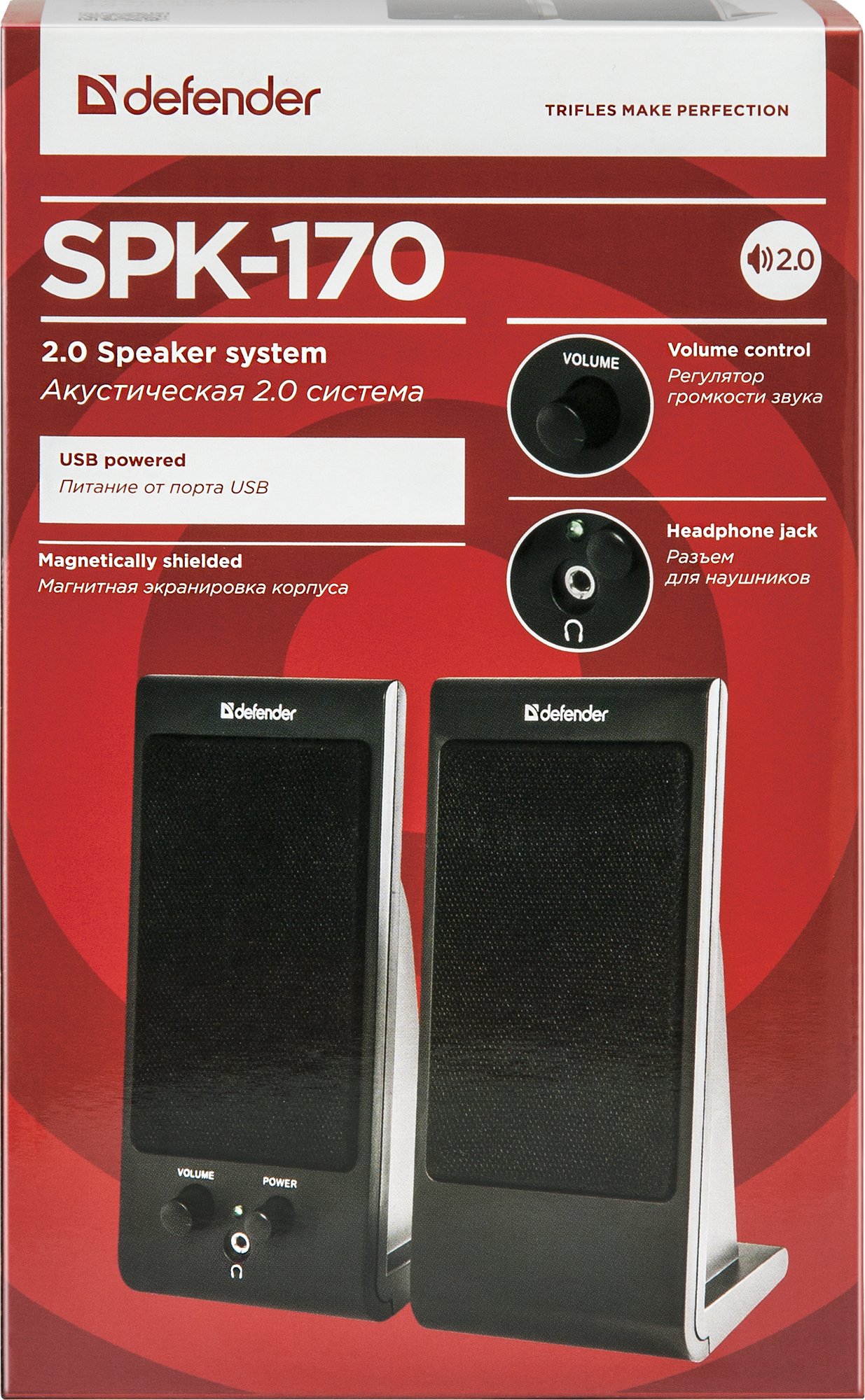Колонки DEFENDER SPK-165\\170 черный 2x1Вт RMS разъем для наушников 65165 (SPK 165)