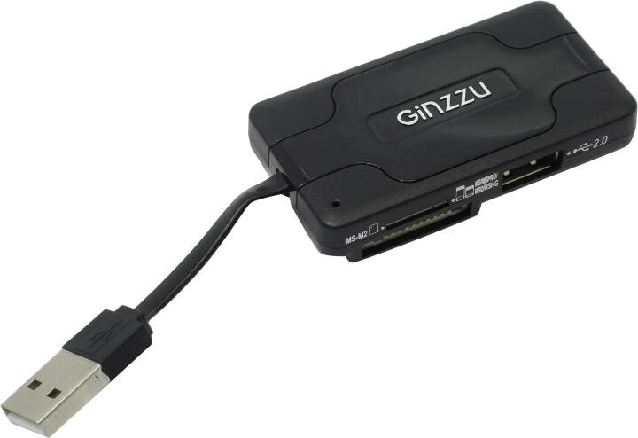 Картридер внешний Ginzzu GR-417UB SD/SDHC/SDXC/MicroSD/MS/M2 + 3xUSB Hub черный