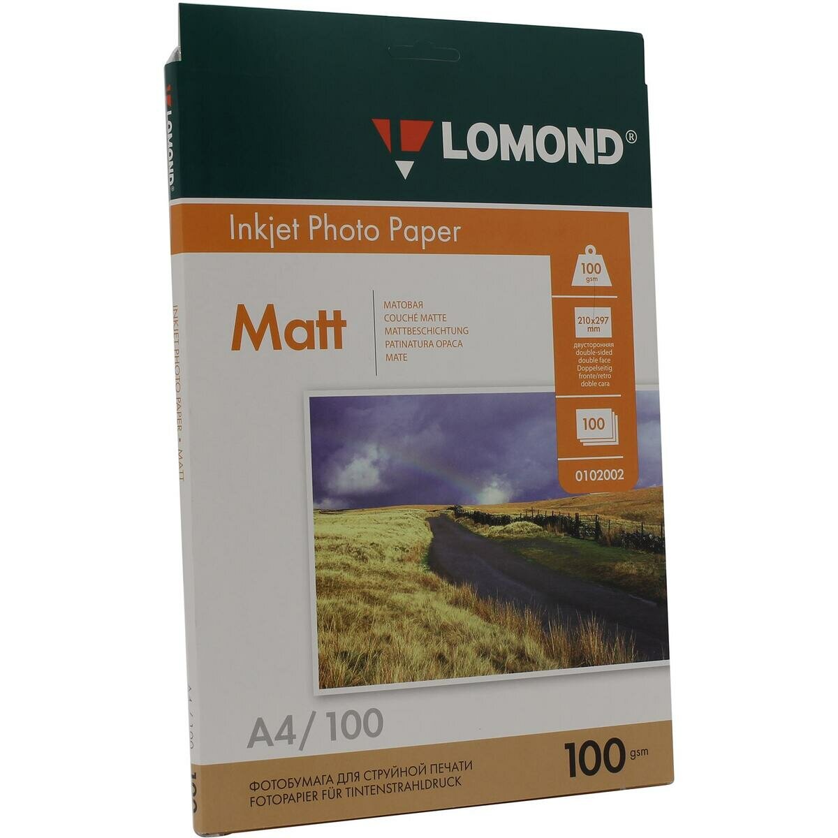 Фотобумага Lomond А4 100г/кв.м двухсторонняя матовая 100л 0102002 для струйной печати, A4, 100 г/м2, 100 листов, двусторонняя, матовая/матовая (0102002)