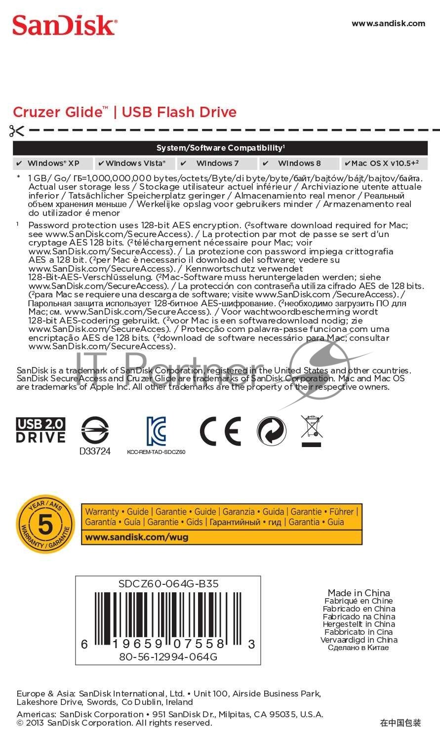 Код производителя: Cruzer Glide SDCZ60-064G-B35
