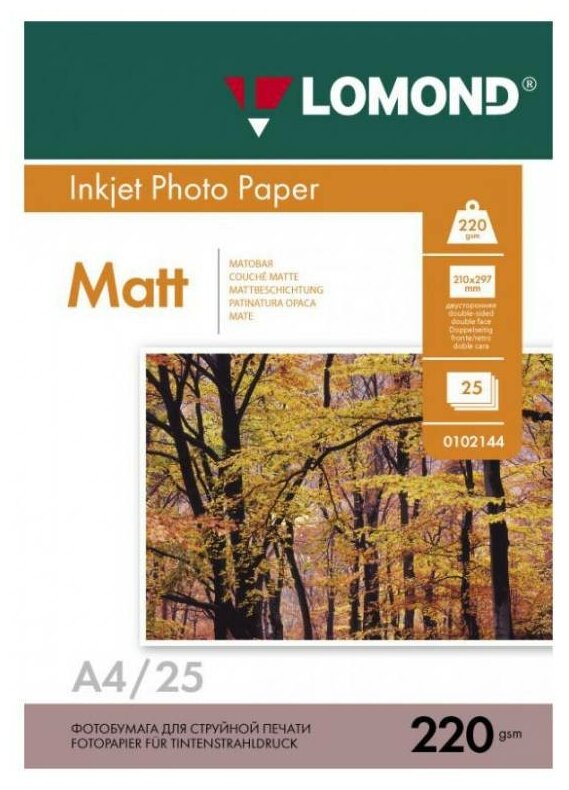 Фотобумага Lomond А4 220г/м2 25л двухсторонняя матовая 102148