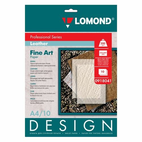 Фотобумага Lomond A4 200г/м2 глянцевая дизайнерская Кожа 10л 0918041 Глянцевая"Кожа", 200/А4/10л.(0918041)