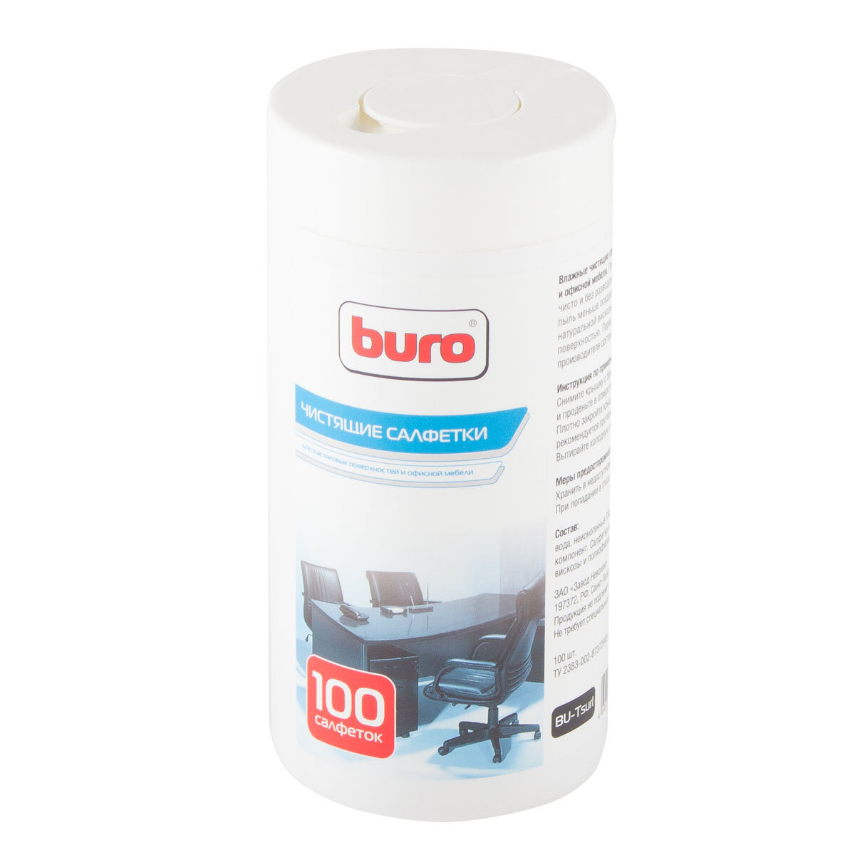 Салфетки Buro BU-Tsurl, для пластиковых поверхностей и офисной мебели, влажные, 100 шт (туба)