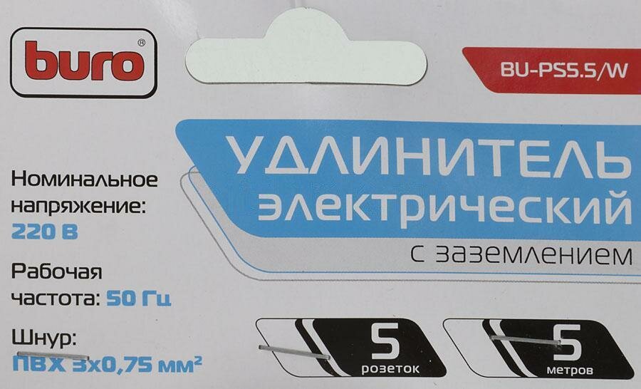 Удлинитель BURO BU-PS5.5/W 5 розеток 5 м белый