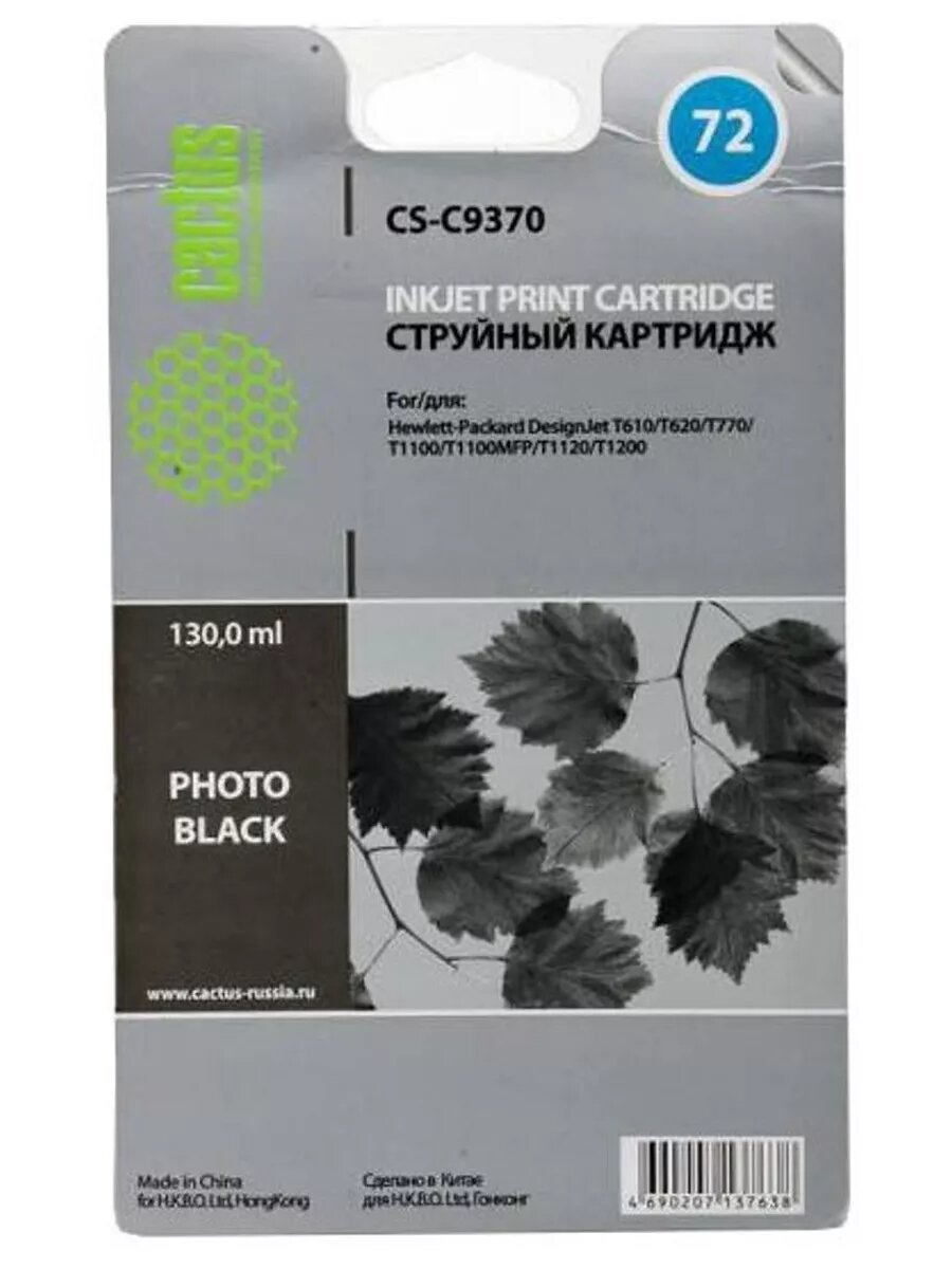 Картридж Cactus CS-C9370 №72 для HP DesignJet T610/T620/T770/T1100/T1100MFP/T1120/T1200 фото-черный