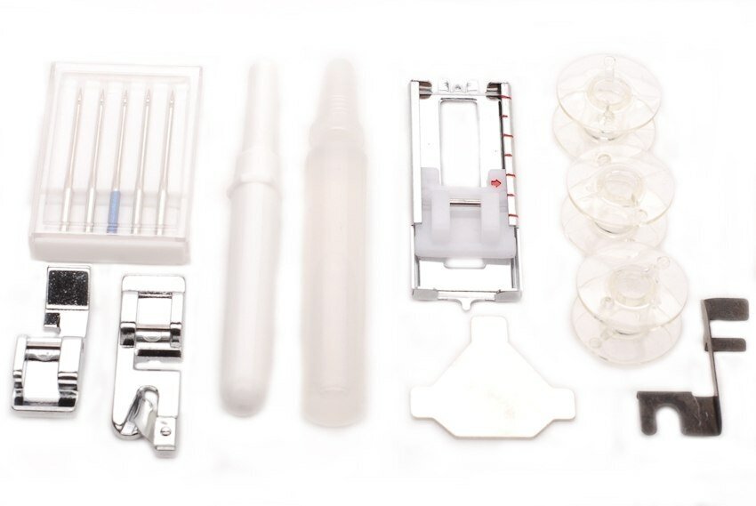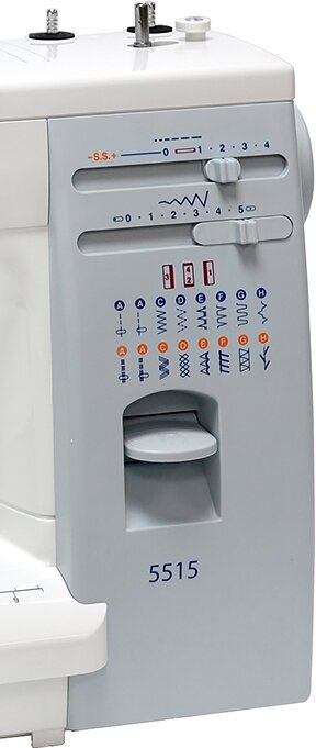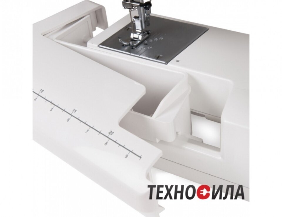 | Прочие особенности и свойства | Электромеханическая швейная машина, 15 швейных операций, рабочие строчки, потайные строчки, оверлочные строчки, трикотажные строчки, декоративные строчки, петля-полуавтомат, Регулировка длины стежка от 0 до 4 мм, Регулировка ширины зигзага до 5 мм, Регулятор натяжения верхней нити, Вертикальный челнок, Рычаг обратного хода, Легко пристегивающаяся лапка, Дополнительный подъём лапки, Встроенный нитеобрезатель, Встроенный нитевдеватель, Переключатель нижнего транспортера, Металлическая станина, Два металлических вертикальных катушечных стержня, Свободный рукав, Отсек для хранения аксессуаров с держателями для шпулек |