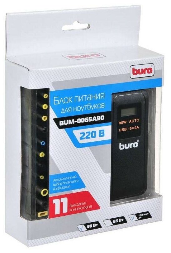 Блок питания для ноутбука Buro BUM-0065A90 11 переходников 90Вт черный BUM-0065A90 автоматический 90W