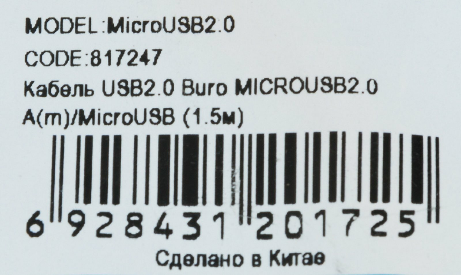 Кабель microUSB 1.5м BURO круглый MICROUSB2.0