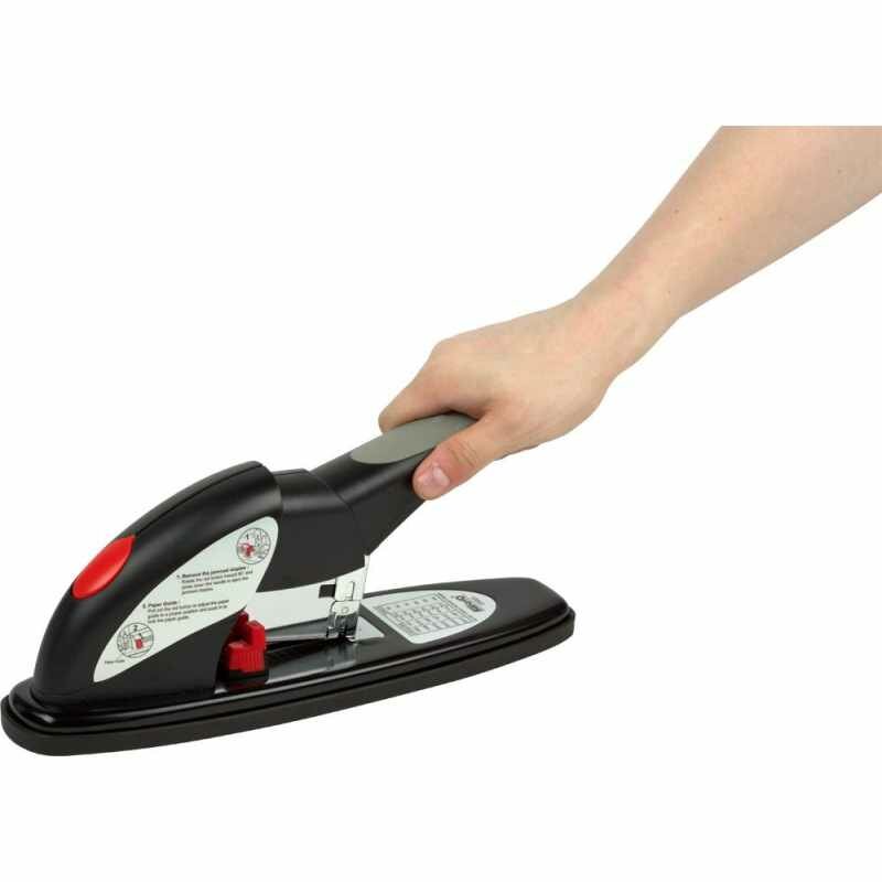 | Особенности | Мощный степлер до 140 листов, фронтальная згрузка скоб, скобы 23/6-23/17, мягкий пластик на рукоятке для удобства и легкости использования |