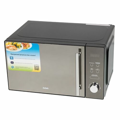 Отличительной чертой микроволновой печи является зеркальная передняя панель. Также модель располагает широким набором функций для разморозки, приготовления или подогрева блюд. Функция автоменю предназначена для автоматического приготовления популярных мясных блюд и гарниров.