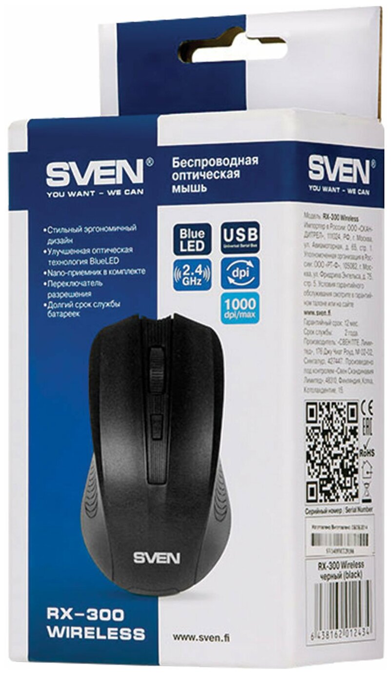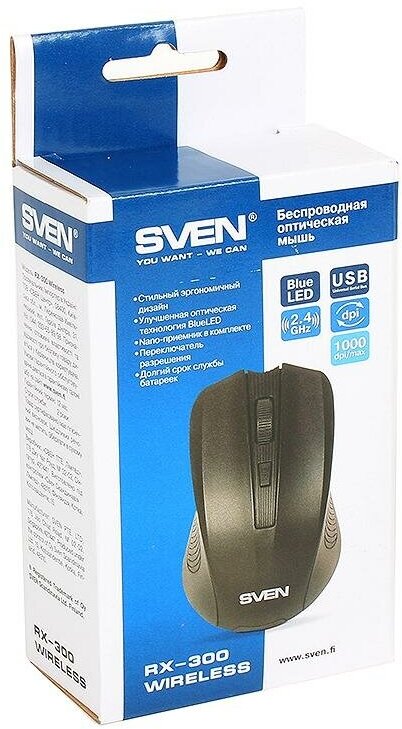 Мышь SVEN RX-300 Wireless не только удобная, а еще и очень экономическая. Вспоминать о необходимости замены батареек в этой модели приходится приблизительно раз в году. Модель 2.4 GHz Nano-приемником для беспроводного подключения к компьютеру. SVEN RX-300 Wireless – отличное решение для тех, кто ценит удобство и качество.