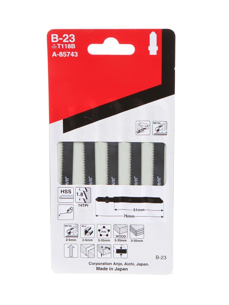 | Прочие характеристики и свойства | Пилка для электролобзика по металлу, в том числе алюминию (2-6мм); пластику (3-35мм); дереву (3-35мм); дереву с гвоздями для прямолинейного реза. |