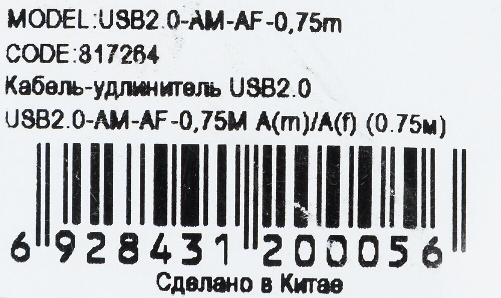 | Код производителя | USB2.0-AM-AF-0,75M |