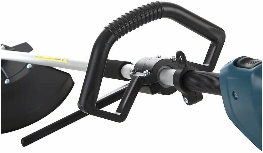 В комплект входит все необходимое для работы ременная оснастка на одно плечо, триммерная головка полуавтоматическая и четырехлопастной нож диметром 230 мм.