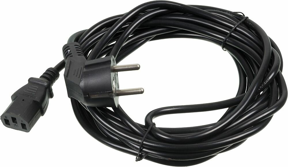| Описание | Кабель для подключения блока питания компьютера, монитора или источника бесперебойного питания к электросети. Длина кабеля 5 метров. |