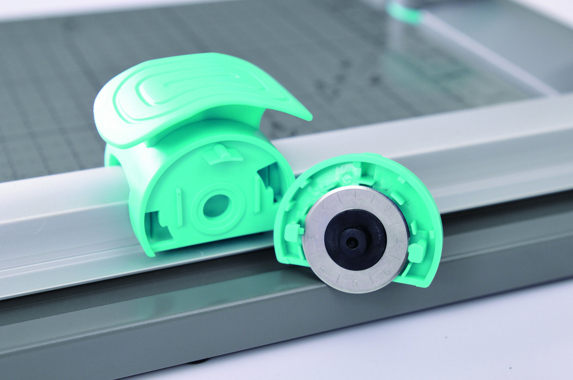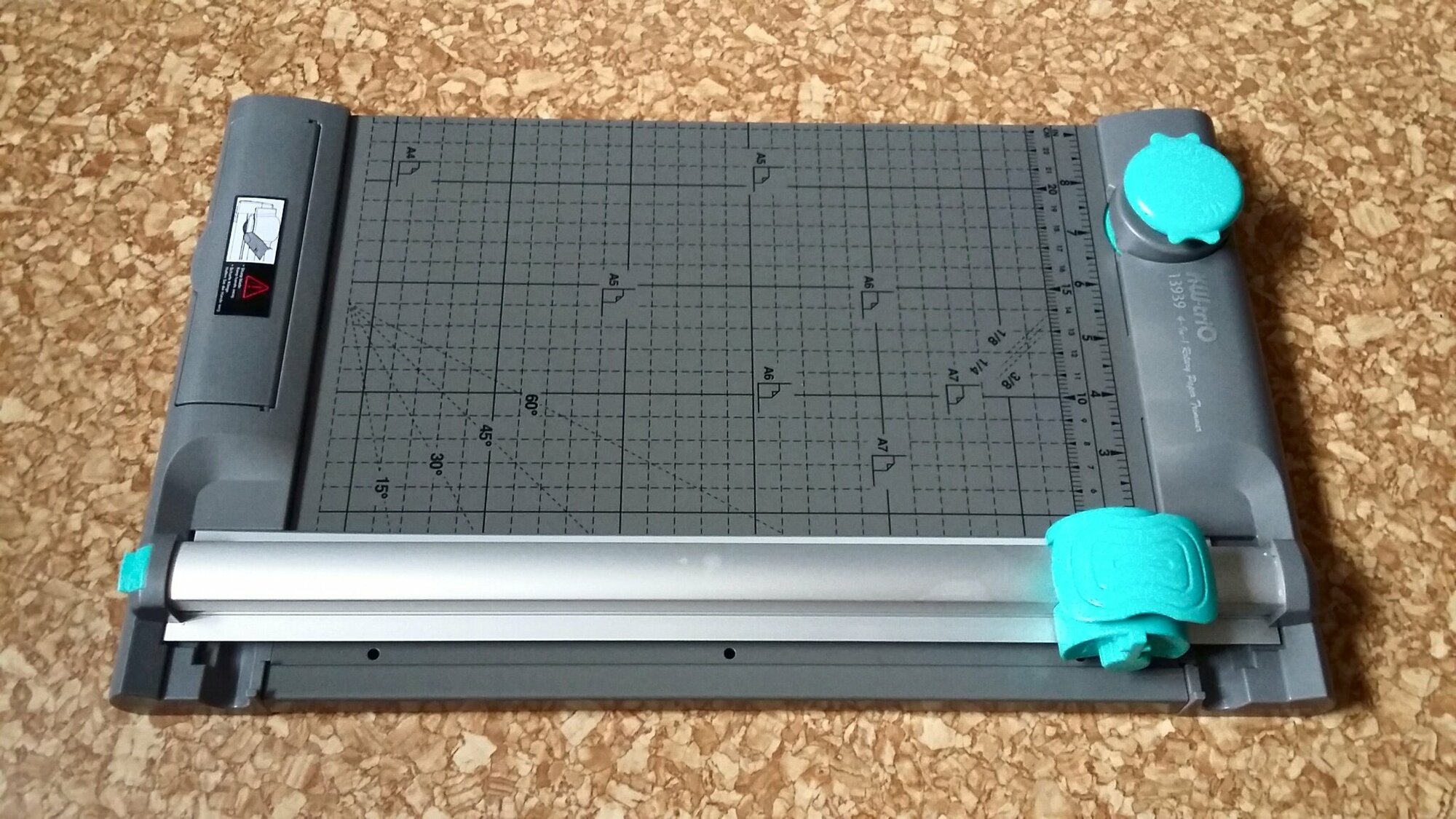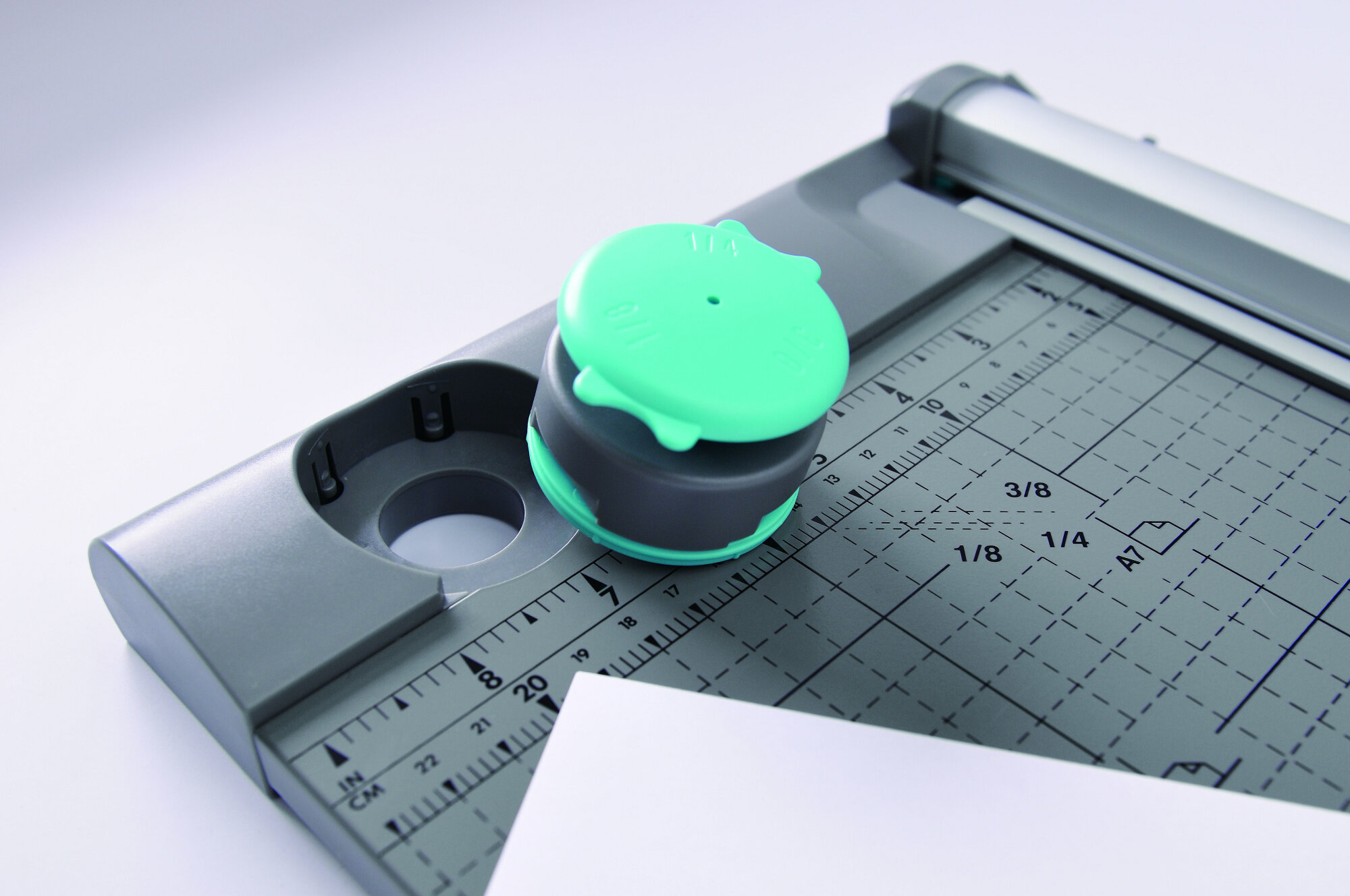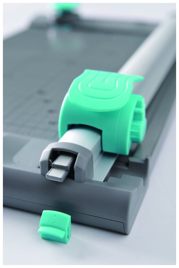 Настольный резак Kw-Trio 13939 с автоматическом прижимом бумаги. Встроенный обрезчик угла с радиусами закругления: 1/4, 1/8 и 3/8. Роликовый нож обладает безопасной режущей головкой. Разметка линейки резака выполнена в мм/дюймы, а также имеется разметка форматов от А4 до А7. Кроме того, в комплект входит набор фигурных ножей (перфорация, волновой рез).