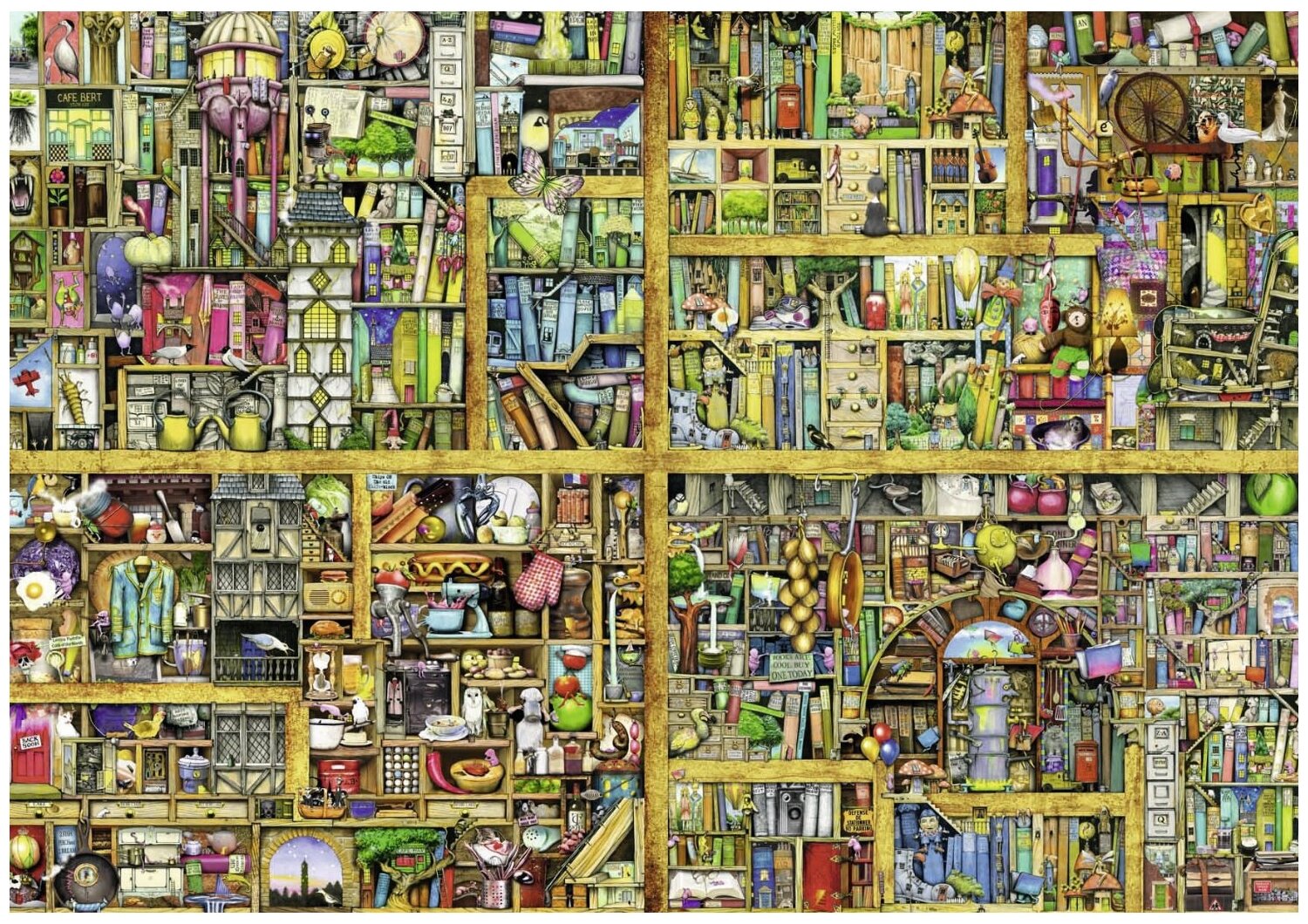 Ravensburger Пазл Волшебный книжный шкаф XXL 18000 элементов 17825 Пазл "Волшебный книжный шкаф" от компании Ravensburger состоит из 18000 элементов оригинальной формы, которые складываются без помощи клея. Собрав большую картину, можно увидеть изображение невообразимого книжного шкафа, на полках которого хранятся самые разные предметы, начиная с простых книг, и заканчивая приготовленной едой. Размер собранного поля: 276 х 192 см.
