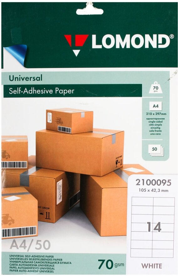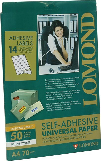 Универсальная самоклеящаяся бумага Lomond предназначена для изготовления разнообразных лэйблов, этикеток и т. п., которые используются как наклейки на почтовую корреспонденцию, товарные упаковки и любые другие изделия.