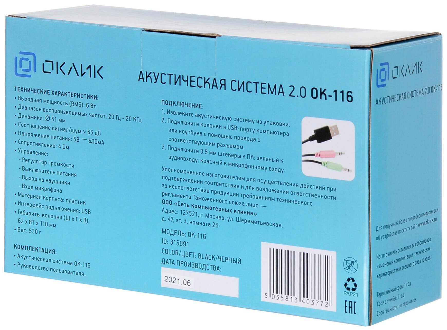 На сегодняшний день товар «Колонки Oklick OK-116 2x3Вт черный» можно купить с кешбеком в 1 магазине: Onliner BY