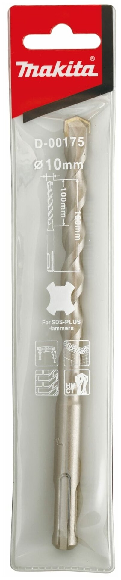 Бур Makita SDS-PLUS D-00175 10х100х160мм SDSMAX D-00175 SDS+ Ф10х100/160мм
