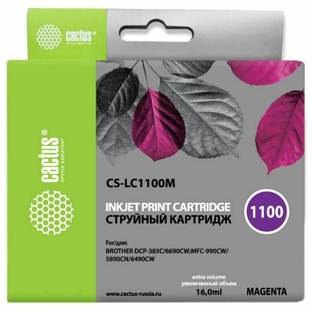 Картридж струйный Cactus CS-LC1100M пурпурный для Brother DCP-385c/6690cw/MFC-990/5890/5895/6490 (16мл)