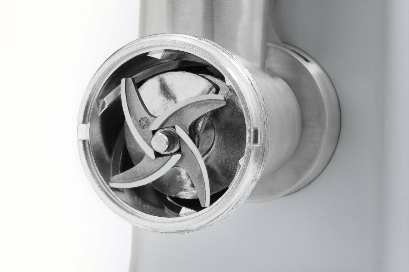 Электрическая мясорубка CASO FW 2000, которая оснащена двигателем с низким уровнем шума и функцией реверса. Благодаря большой мощности она легко справляется с любым мясом. Насадки, входящие в комплект, порадуют разнообразием возможностей самых требовательных поваров. Это диски из нержавеющей стали с отверстиями различного диаметра для приготовления всех видов фарша, насадки для колбас и для печенья.