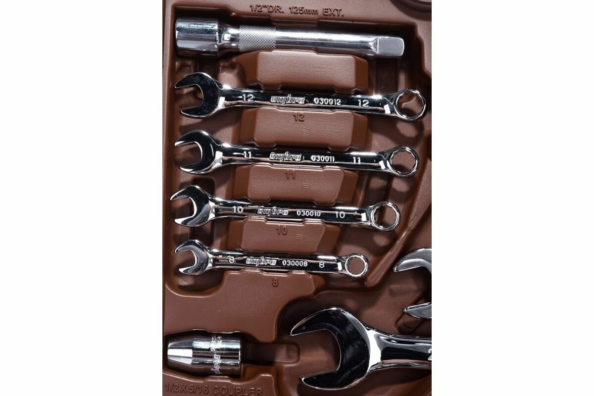 | Подробный состав комплекта | Головки торцевые 1/4''DR, 13 шт.: 4, 4.5, 5, 5.5, 6, 7, 8, 9, 10, 11, 12, 13, 14 мм;, Удлинитель 1/4"DR, 50 мм;, Удлинитель 1/4"DR, 100 мм;, Рукоятка трещоточная 1/4"DR, 72 зубца;, Вороток Т-образный 1/4"DR, 120 мм;, Шарнир карданный 1/4"DR;, Головки торцевые 1/2''DR, 10 шт.; 15, 16, 17, 18, 19, 22, 24, 27, 30, 32 мм;, Удлинитель 1/2"DR, 125 мм;, Удлинитель 1/2"DR, 250 мм;, Головка торцевая свечная 1/2"DR, 16 мм;, Головка торцевая свечная 1/2"DR, 21 мм;, Рукоятка трещоточная 1/2"DR, 72 зубца;, Шарнир карданный 1/2"DR;, Переходник 3-х сторонний 1/2"DR;, Ключи гаечные комбинированные, 11 шт.: 8, 9, 10, 11, 12, 13, 14, 15, 17, 19, 22 мм;, Отвертки стрежневые крестовые BASIC, 3 шт. |