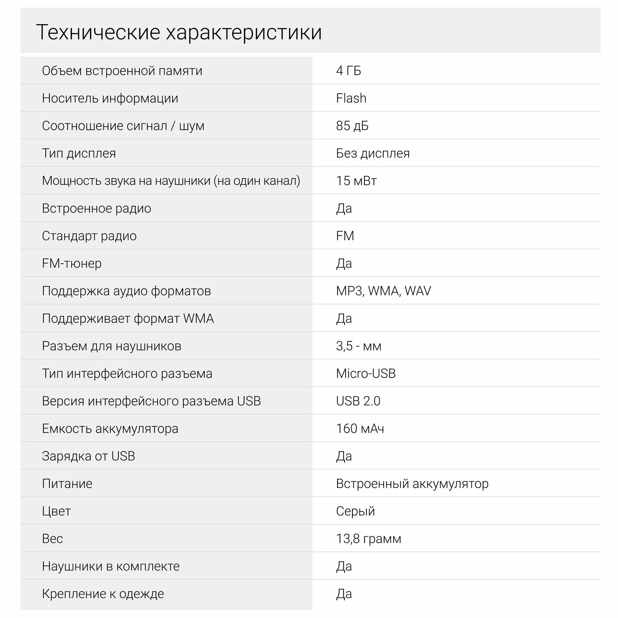 Купили для прослушивания во время занятий скандинавской ходьбой. Выбирали среди недорогих моделей с fm-приёмником. Сразу поменяли наушники на более качественные. Определяется как флешка, музыка записывается без проблем. Радио работает.
