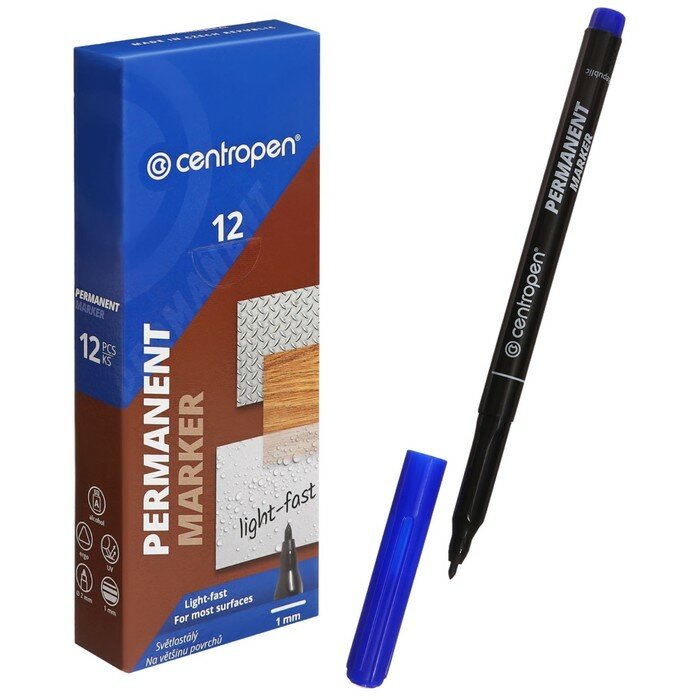 Универсальный перманентный маркер пригодится школьникам и взрослым для выделения и закрашивания текстов или для рисования. Изделие подходит для любых типов поверхностей. После высыхания чернила устойчивы к стиранию, воде, атмосферным воздействиям и свету. Не имеют запаха. Эргономичная форма корпуса уменьшает напряжение мышц пальцев при письме. Писать и рисовать с маркерами от Centropen удобно и просто!