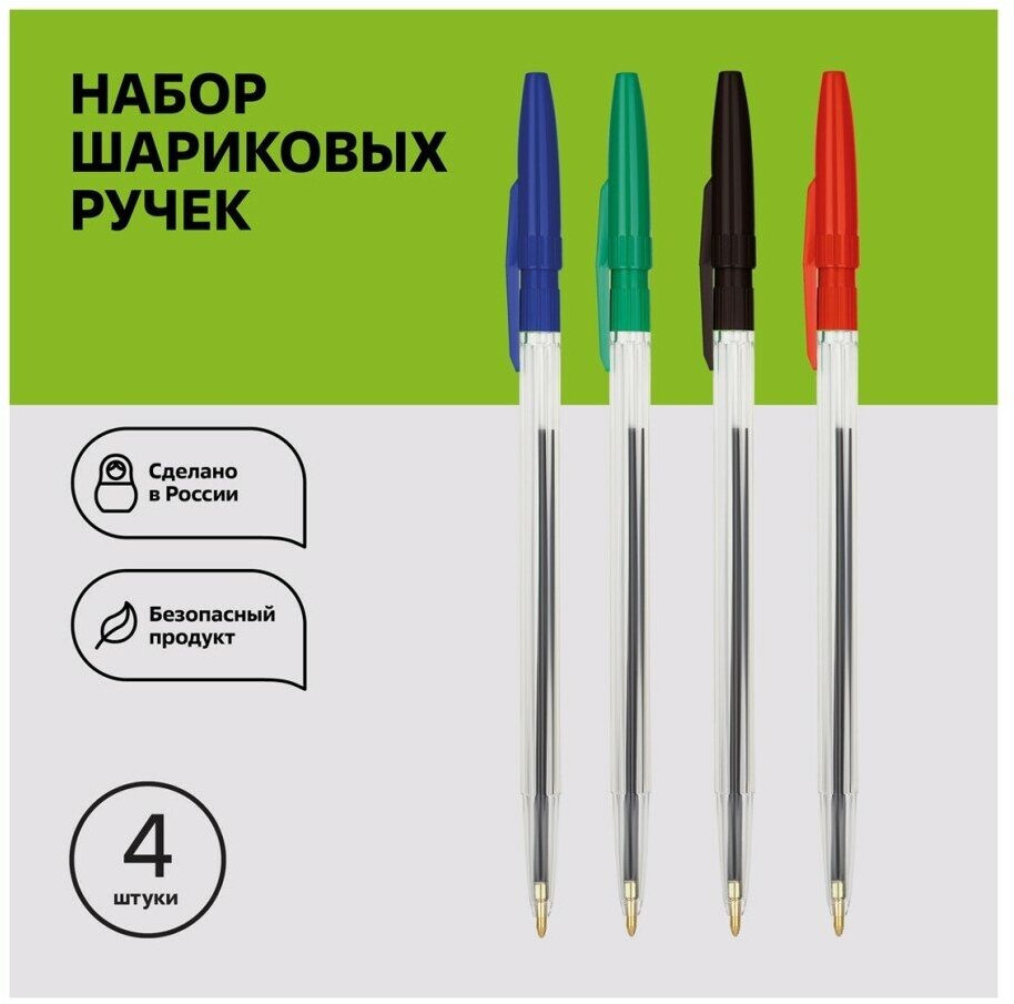 Набор шариковых ручек СТАММ РК07 4 шт разноцветный 1 мм РК07