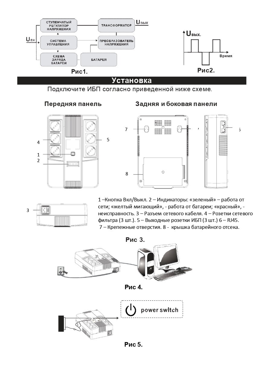 | Время переключения на батарею | 4 мс |