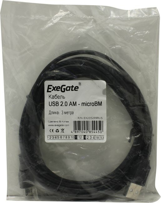 Кабель microUSB 3м Exegate круглый EX205299RUS