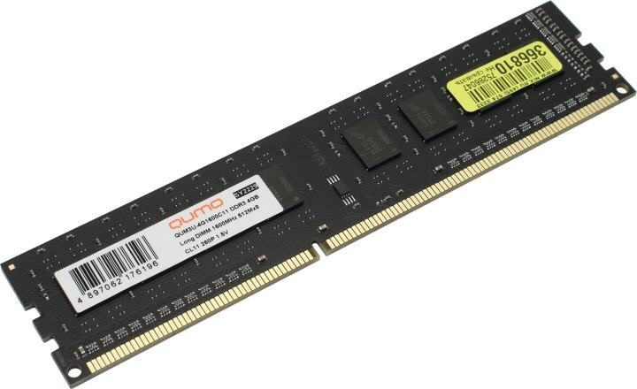 Оперативная память 4Gb (1x4Gb) PC3-12800 1600MHz DDR3 DIMM CL11 QUMO QUM3U-4G1600C11